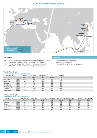 20 Asia - Europe Schedules and Transit times are subject to change.