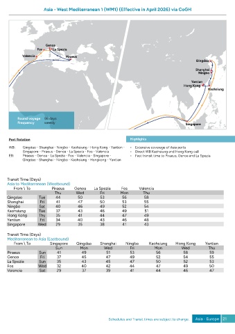 Schedules and Transit times are subject to change. Asia - Europe 21
