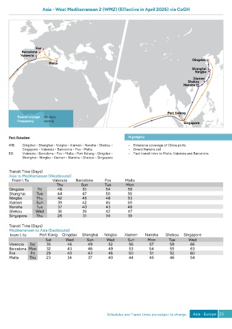 Schedules and Transit times are subject to change. Asia - Europe 23