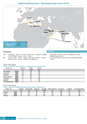 24 Asia - Europe Schedules and Transit times are subject to change.