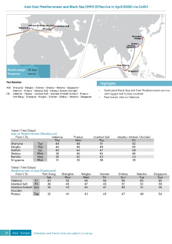 26 Asia - Europe Schedules and Transit times are subject to change.