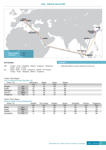 Schedules and Transit times are subject to change. Asia - Europe 27