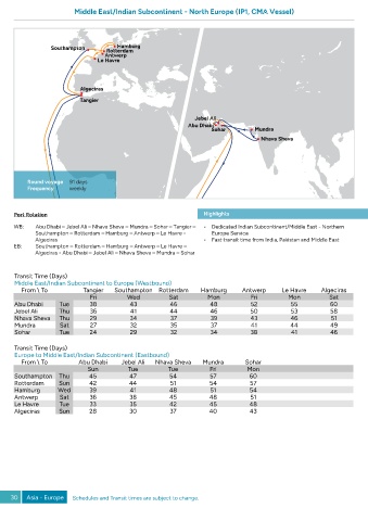 30 Asia - Europe Schedules and Transit times are subject to change.