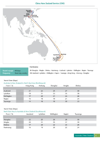 Frequency fixed-day weekly NB: Auckland – Lyttelton – Wellington – Napier – Tauranga – Hong Kong – Keelung – Shanghai
