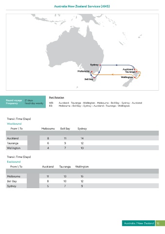 Frequency fixed-day weekly WB: Auckland - Tauranga - Wellington - Melbourne - Bell Bay - Sydney - Auckland