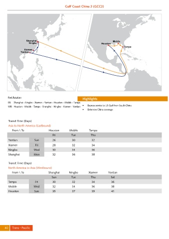 WB: Houston - Mobile - Tampa - Shanghai - Ningbo - Xiamen - Yantian • Express service to US Gulf from South China