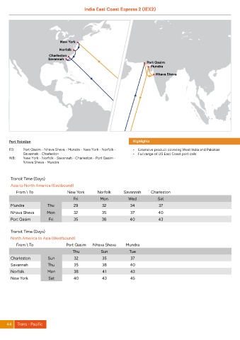 EB: Port Qasim - Nhava Sheva - Mundra - New York - Norfolk - •ɹExtensive product covering West India and Pakistan
